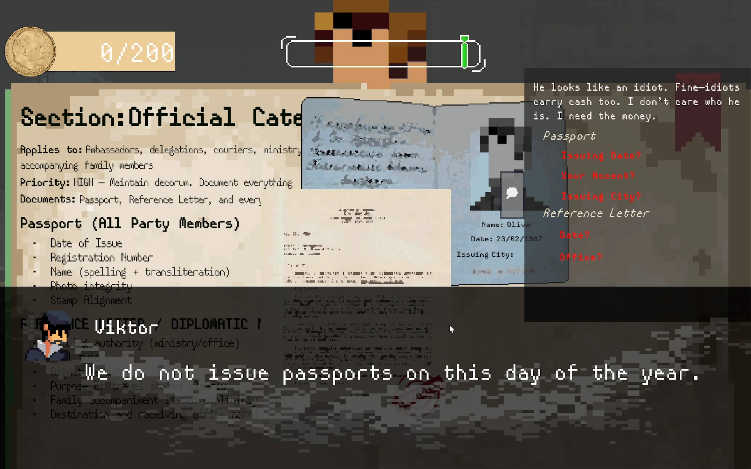 Inspect travel documents. Exploit loopholes. Take bribes—or try not to.
